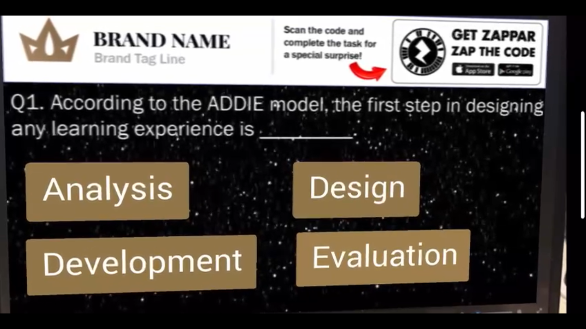 This AR-powered Employee Reward Card was designed as an innovative way for HR teams to boost employee engagement. By scanning the card with the Zappar app, employees unlock a short quiz. Upon completing it, they reveal a reward code that can be shared with HR to claim a gift - turning post-training assessments into a fun, gamified experience.