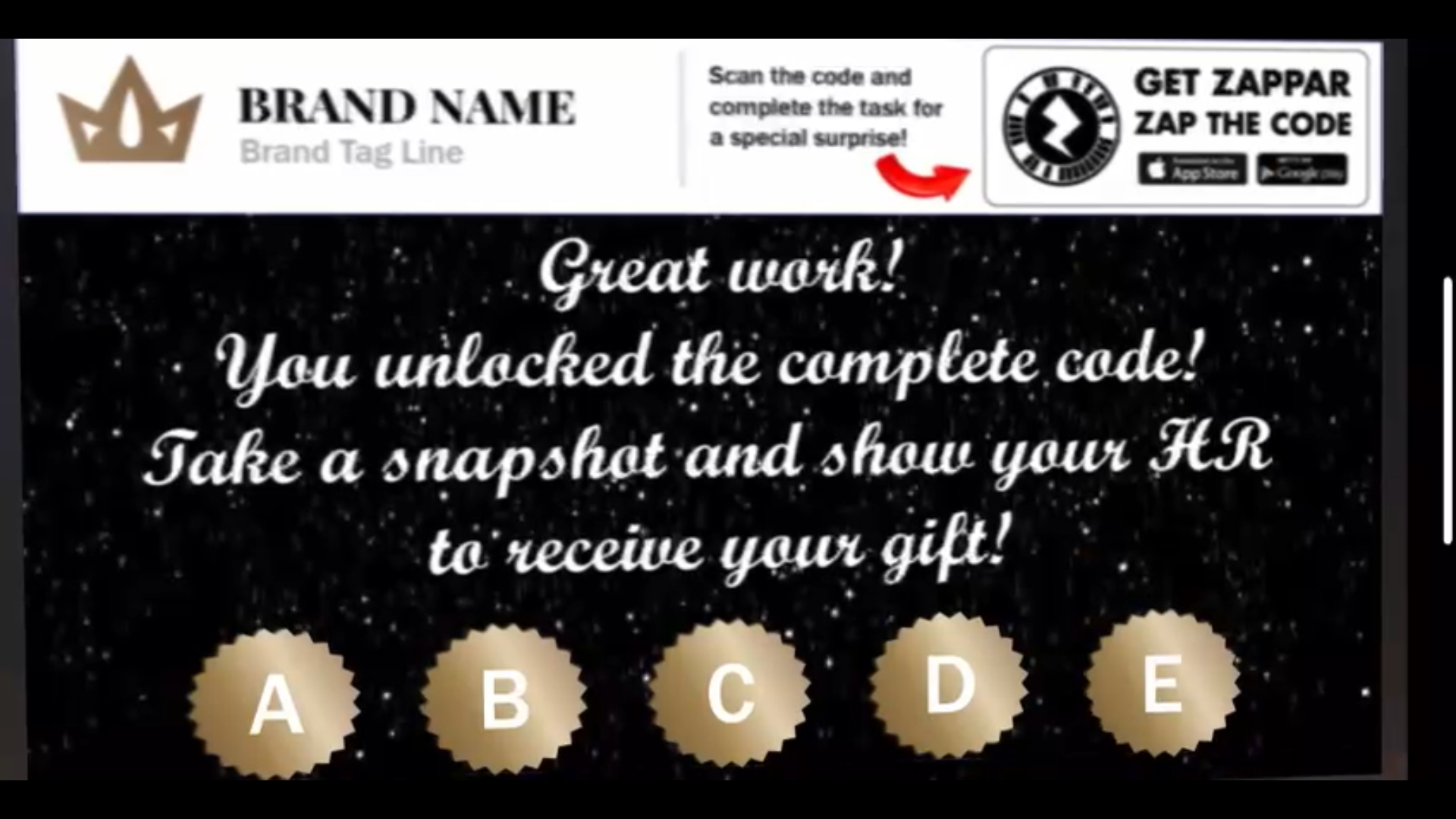 Motivational element: At the end, employees present the completed code to HR to claim a special gift.